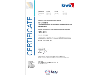 우주항공 품질경영 시스템 인증서
